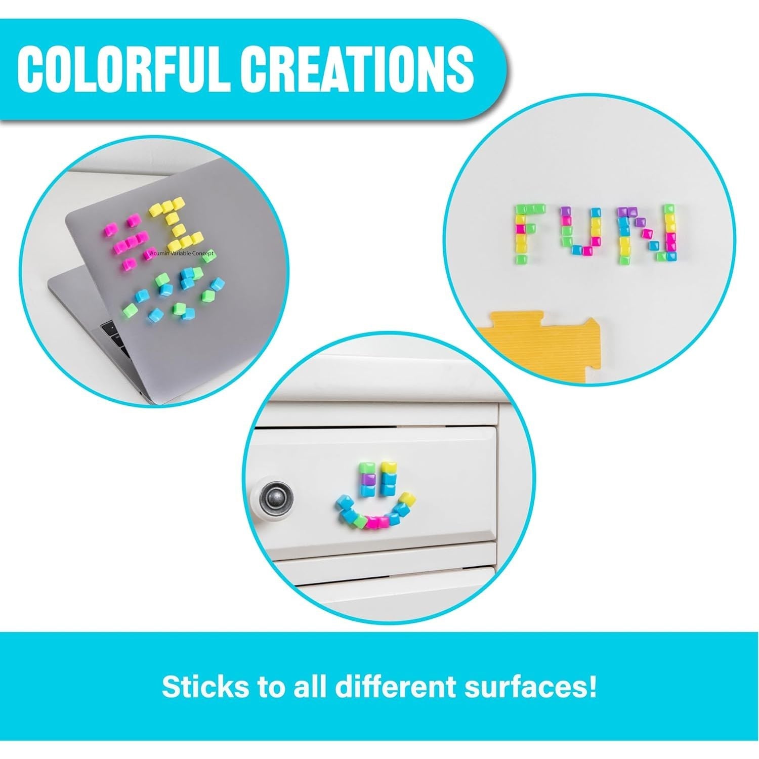 StickiKubes are the original mini stacking cubes that stick to almost any surface—except fabric.
