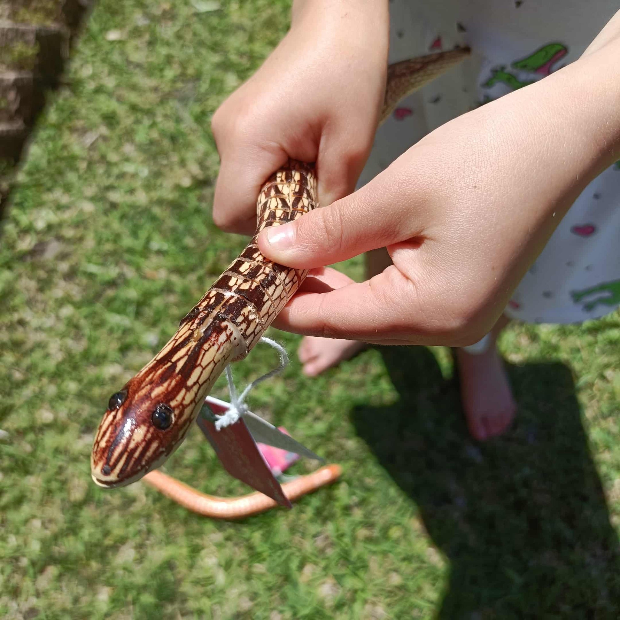 This traditional wooden snake toy is a perfect vintage toy or gift! Body is cleverly articulated which allows it to slither much like a real snake.