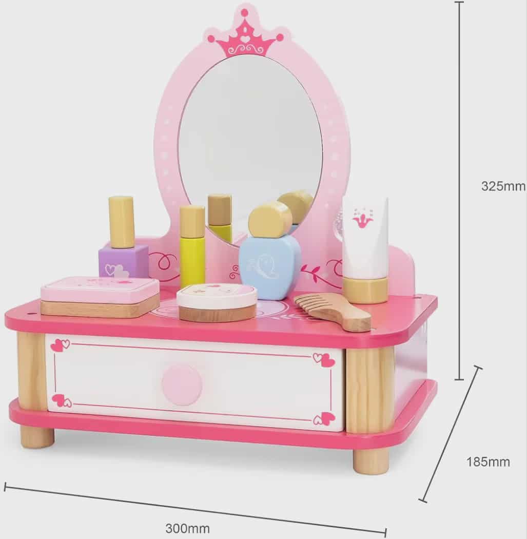 Little ladies will love having their very own dressing table and princess mirror for playing dress-up. Let them be just like mummy with pretend accessories including a comb, lipstick and nail varnish.